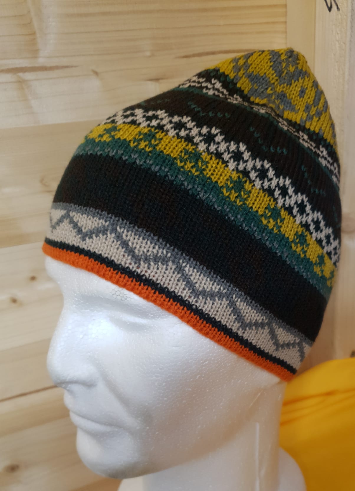 Bonnet mixte très doux en tissu acrylique et s’ajustant parfaitement aux différentes formes de tour de tête. Les couleurs sont automnales. Taille unique. Ce couvre-chef a été confectionné en Chine.